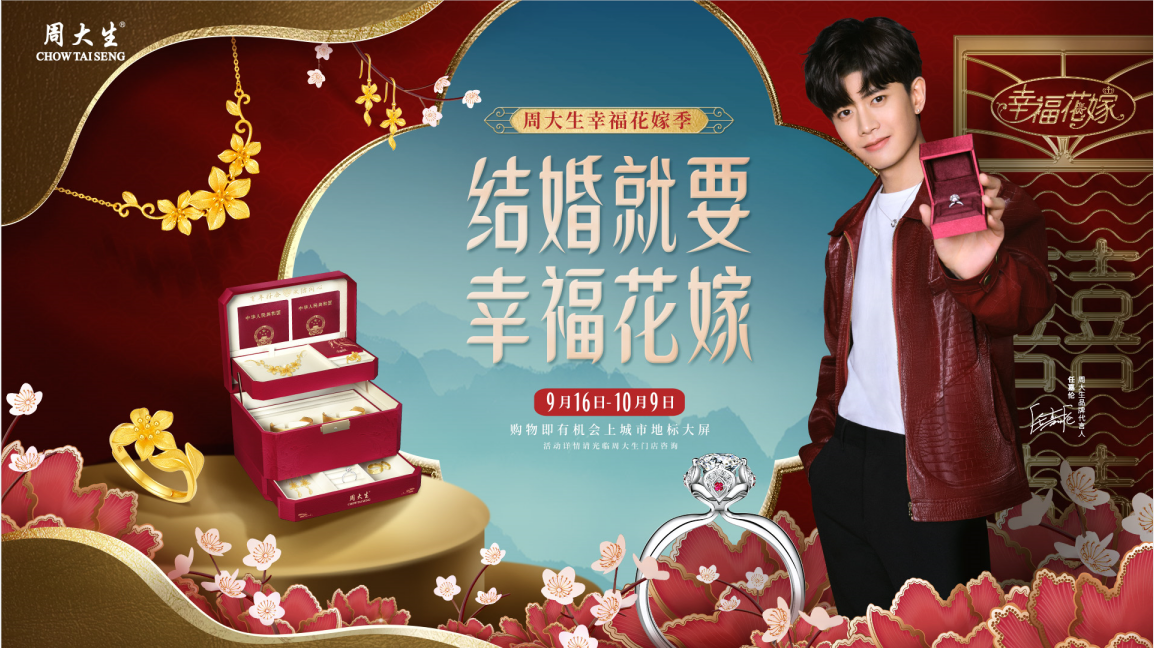 國(guó)慶之際即是婚嫁“熱潮”之時(shí),進(jìn)而珠寶圈也掀起了“金九銀十”的國(guó)慶營(yíng)銷狂潮,各珠寶品牌紛紛發(fā)揮品牌之力“大展拳腳”,“征戰(zhàn)”于國(guó)慶營(yíng)銷。作為一直引領(lǐng)行業(yè)先鋒的周大生珠寶率先以“結(jié)婚,就要幸?;?rdquo;為主題,開(kāi)啟“幸?;藜?rdquo;主題活動(dòng),令人驚喜的是,9月26日,品牌攜手代言人任嘉倫以視頻的形式在微博上為新人們送上祝福,祝愿新人們“共花之晨,共月之夕,共年年歲歲,歲歲年年”,同時(shí)踐行“將愛(ài)傳遞”的初心,號(hào)召新人們一起參與“結(jié)婚照片上地標(biāo)”活動(dòng),為新人們幸福閃耀助力。此舉引起了網(wǎng)友的高度關(guān)注,也引發(fā)不少熱議話題。