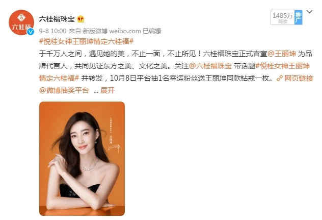 六桂福珠寶官宣全新品牌代言人王麗坤