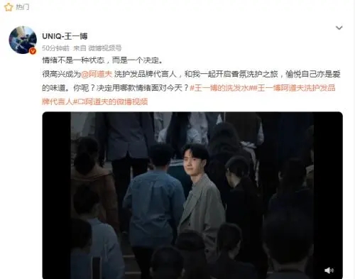 618前夕官宣新生代藝人王一博(明星代言公司)為阿道夫洗護(hù)發(fā)品牌代言人,在官方微博上聯(lián)袂發(fā)布TVC大片,傳遞“情緒不是一種狀態(tài),而是一個決定”的價值主張,愉悅自己亦是愛的味道,提出“你決定,用哪款情緒面對今天”的靈魂叩問,迅速抓取粉絲和消費(fèi)者眼球。同時,派送大波福利,實(shí)力寵粉,迎來品牌發(fā)展的高光時刻。