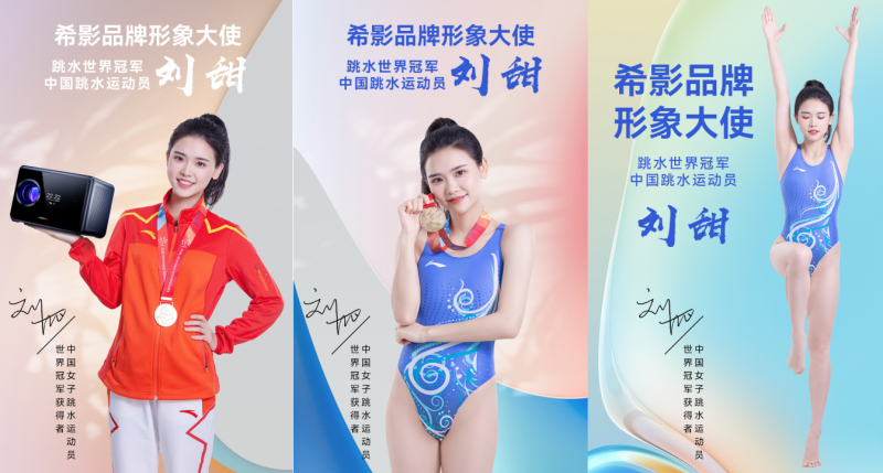 劉甜14歲就獲得了人生第一枚世界冠軍獎(jiǎng)牌,曾是中國(guó)跳水夢(mèng)之隊(duì)最年輕世界冠軍。她在賽場(chǎng)上一路拼搏,不斷書(shū)寫(xiě)著屬于她的傳奇。劉甜年輕且富有活力,而希影作為新興智能投影品牌的代表,產(chǎn)品主要面向年輕人,品牌調(diào)性相當(dāng)契合,雙方攜手為年輕代言。