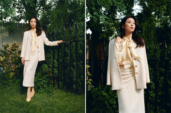 在YINER音兒2023秋冬系列的敘事中,“花園”作為「家」的私密空間外化區(qū)域,是花園主人意識(shí)層面向外展示的過(guò)渡地帶,展現(xiàn)了女性柔美的外在形象與堅(jiān)韌的內(nèi)在力量。恰如劉濤在多年的演藝事業(yè)中,塑造的眾多不同背景下的經(jīng)典女性角色,以百變的形象在多重場(chǎng)所自由切換。生活中的劉濤自信從容,其優(yōu)雅、大氣的風(fēng)度也深入人心。她游走在演繹角色與表達(dá)真我之間,傳達(dá)著多元化的著裝態(tài)度。劉濤所展現(xiàn)的都市女性多面魅力,與YINER音兒品牌始終探索都市女性多樣化著裝需求的理念不謀而合。