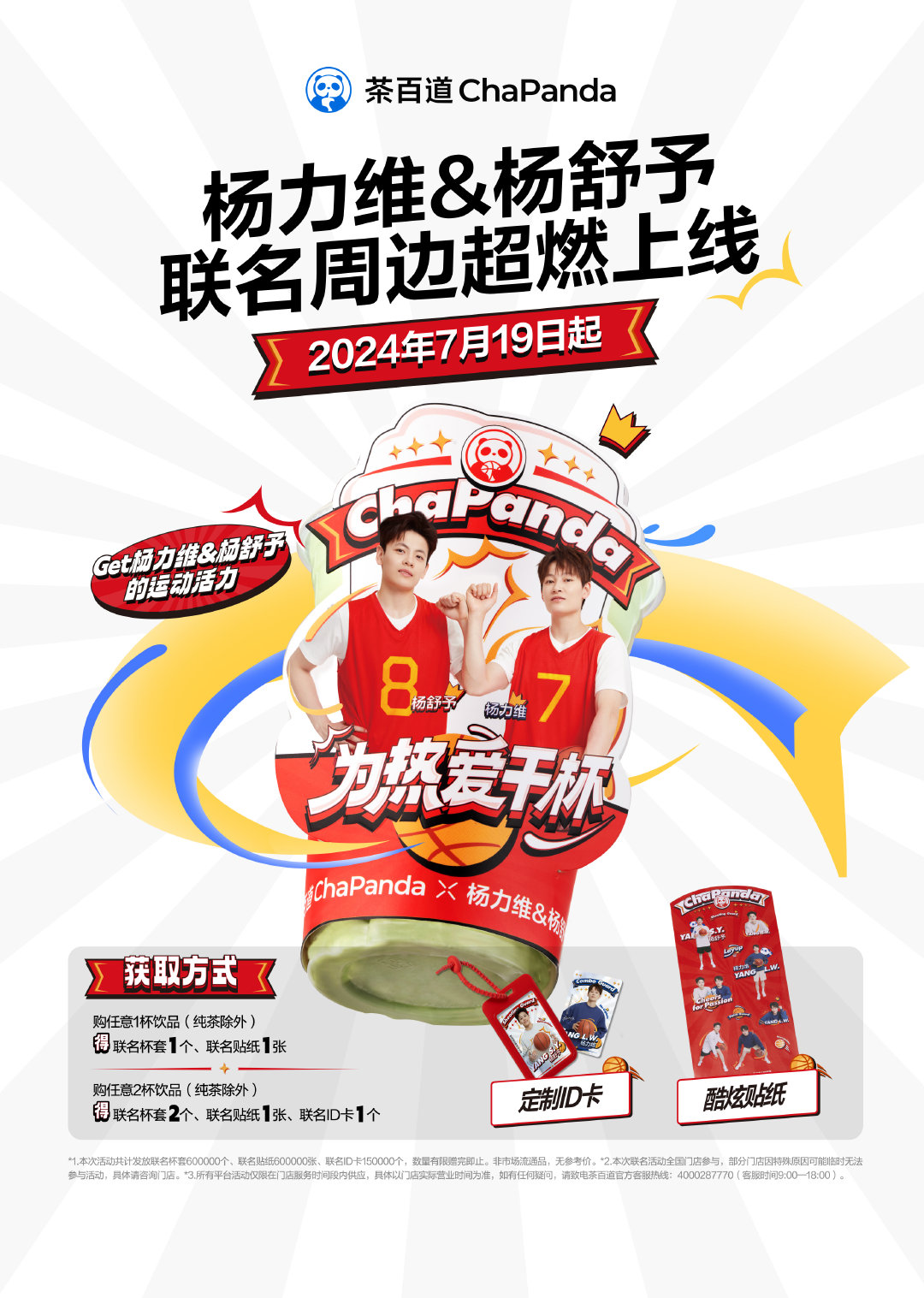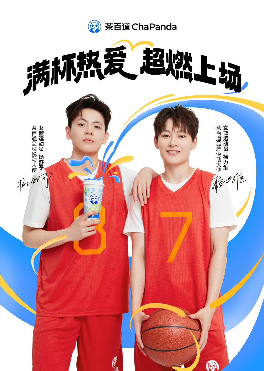 6 月,茶百道就官宣女籃姐妹花楊力維、楊舒予為品牌悅動大使。在奧運會開幕之際,茶百道圍繞兩位悅動大使展開聯(lián)名活動,不僅推出聯(lián)名酷炫貼紙專屬杯套、定制 ID 卡套等多款周邊,還在線下設(shè)置了 24 家主題門店,邀請用戶前去打卡,一起注入好茶能量。