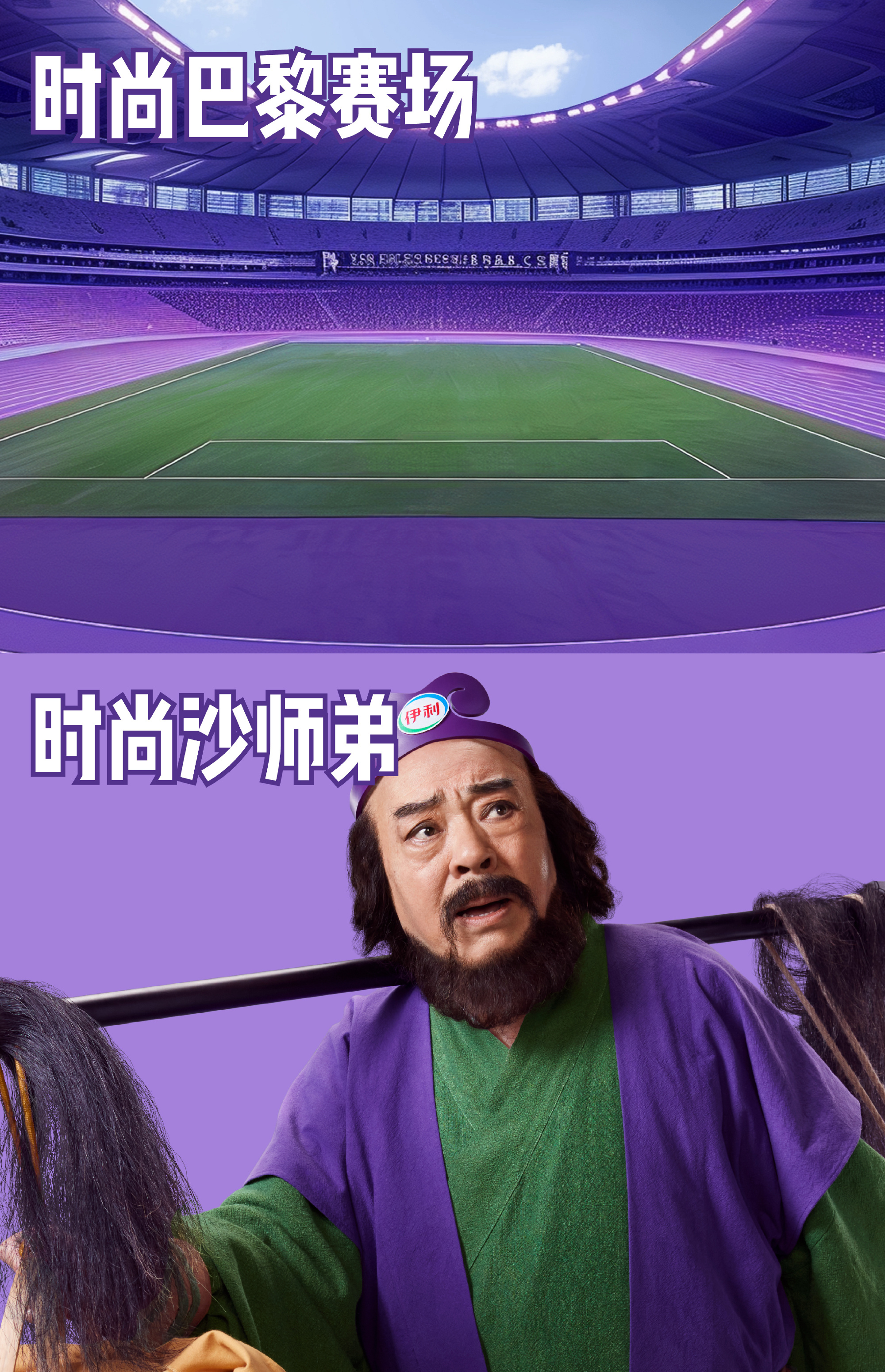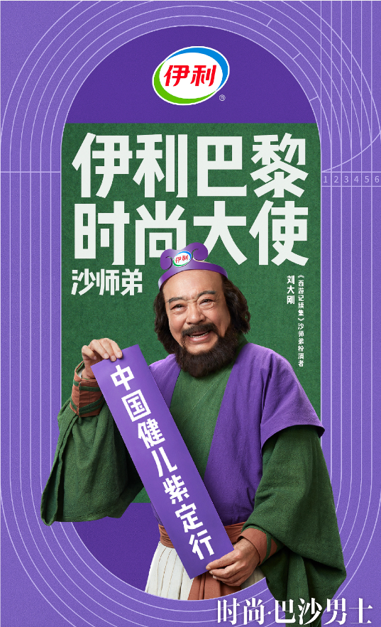 這么有中國(guó)特色的梗,伊利穩(wěn)穩(wěn)拿捏,請(qǐng)來沙和尚的扮演者劉大剛擔(dān)任伊利巴黎時(shí)尚大使,別名——時(shí)尚·巴沙男士,好家伙,這下誰還分得清你沙和尚和時(shí)尚人士的區(qū)別。二者也帶來超有梗的短片,在頗具動(dòng)感的節(jié)奏中,沙師弟成為 8G 沖浪達(dá)人,網(wǎng)絡(luò)梗不斷,「想你的沙,還是吹向了巴黎」、「夢(mèng)幻紫、巴黎紫,咋看咋像我身上的絕絕紫」,并且親自認(rèn)證了時(shí)尚巴沙的稱號(hào),用「紫」來預(yù)祝中國(guó)健兒「紫」定行。