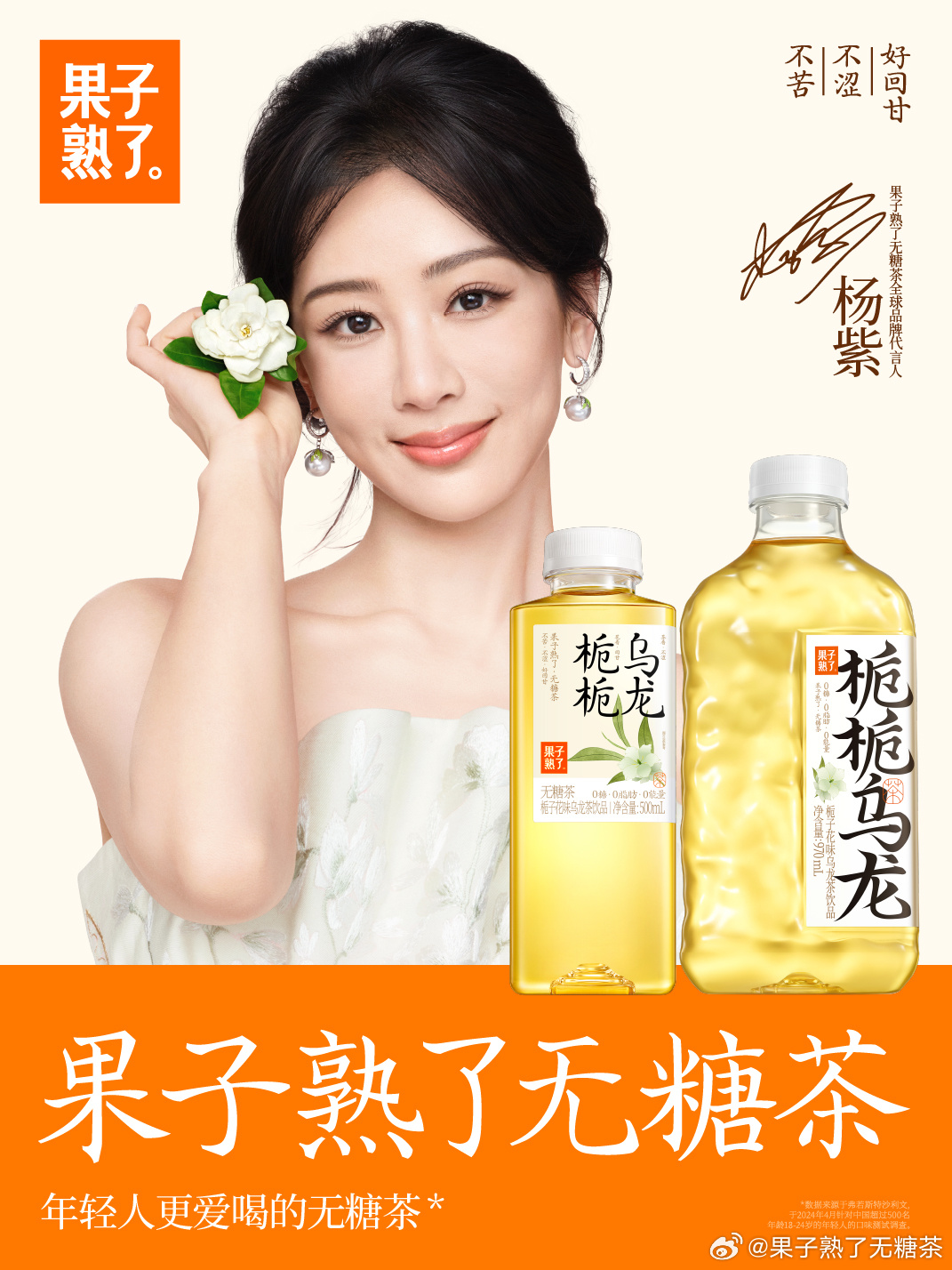 楊紫升任果子熟了無糖茶全球品牌代言人