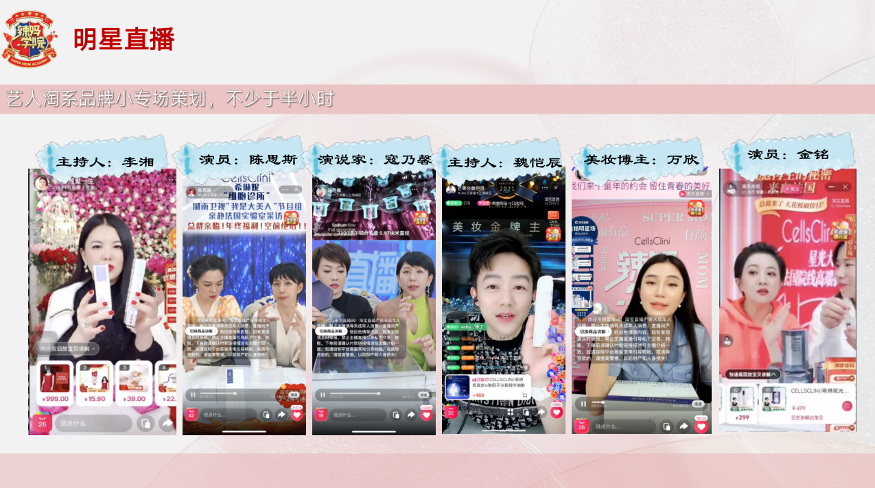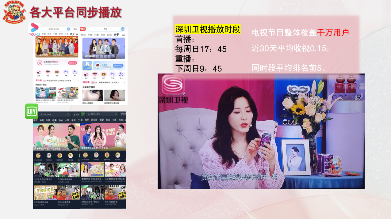 深圳衛(wèi)視重點(diǎn)打造的生活服務(wù)類節(jié)目,是時(shí)尚辣媽的生活圣經(jīng)。 《辣媽學(xué)院》致力于為追求生活品質(zhì)的女性提供全方位內(nèi)容服務(wù),新時(shí)代辣媽冉瑩穎和湖南衛(wèi)視主持人李維嘉傾情,“瑩嘉組合”全新亮相,共話時(shí)尚美妝、美顏美體、健康生活等熱門話題。