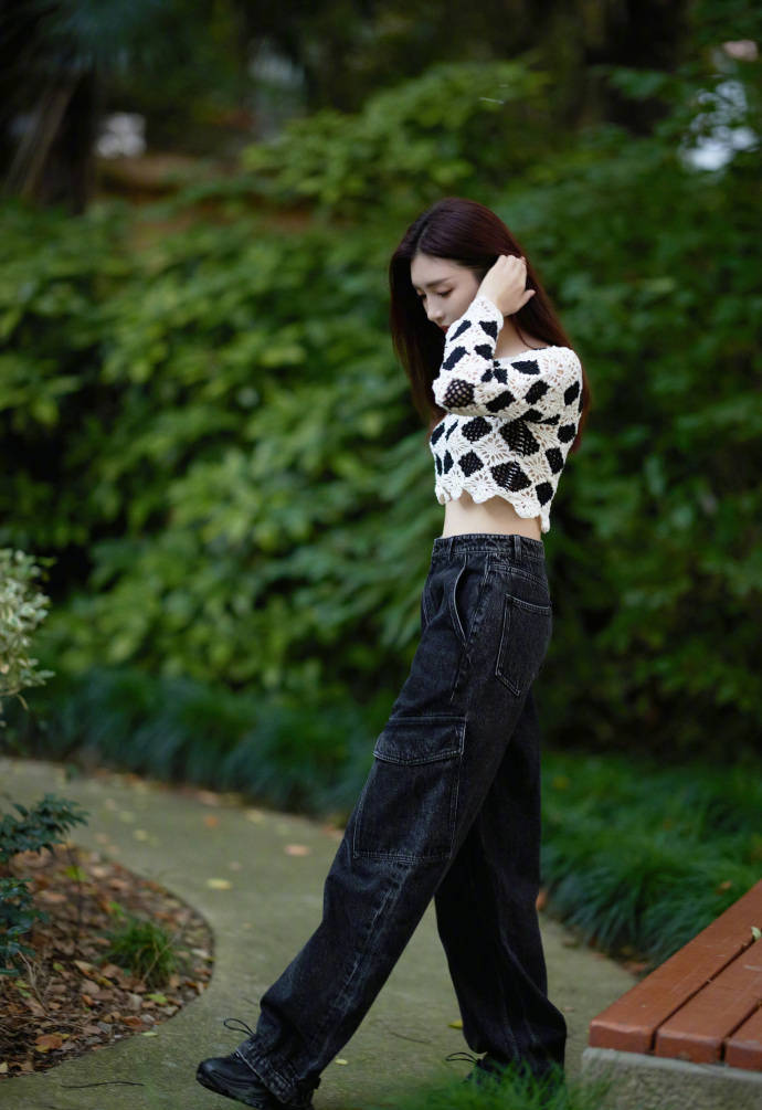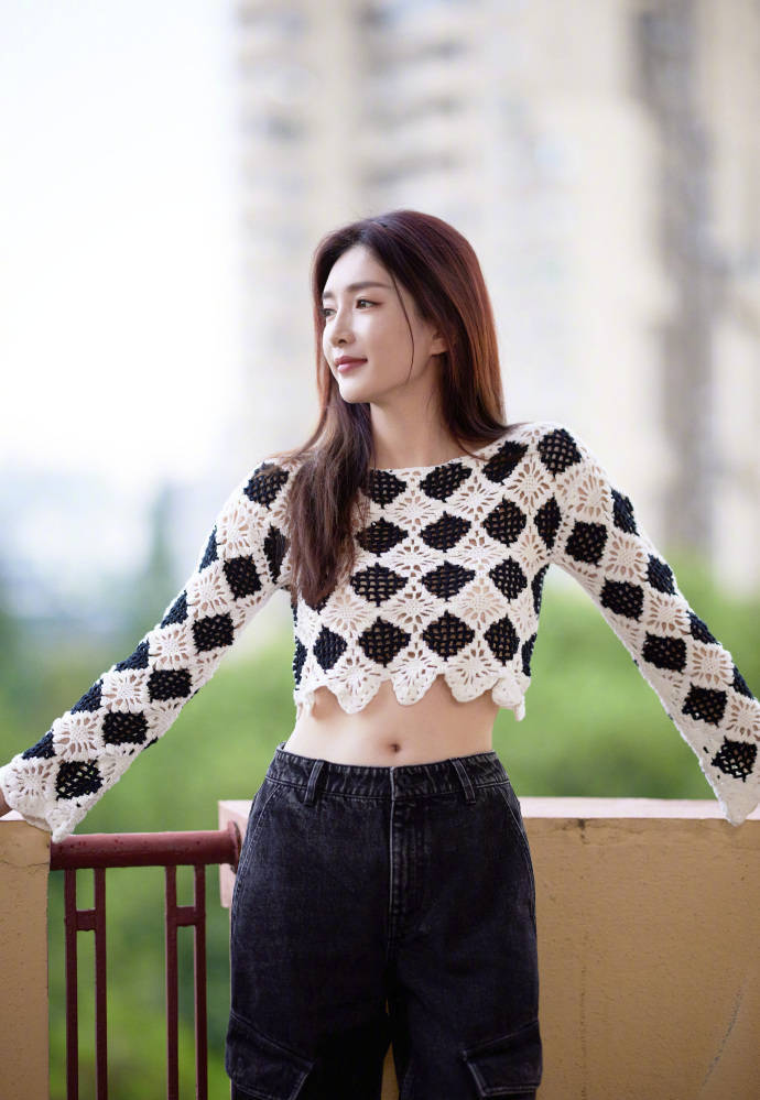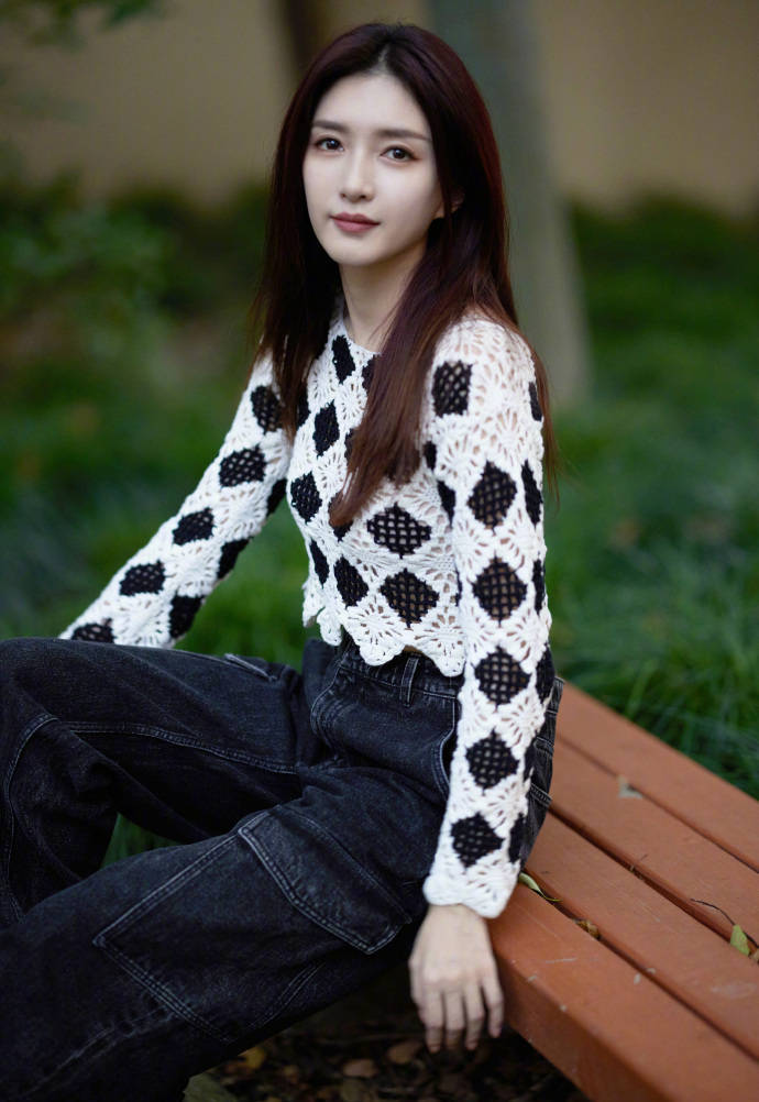 江疏影穿黑白格上衣告別夏日 優(yōu)雅知性清冷感十足