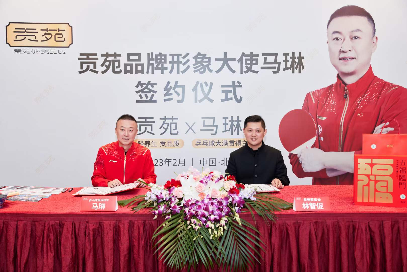 近日貢苑品牌官宣馬琳作為品牌代言人,在北京舉行簽約儀式。