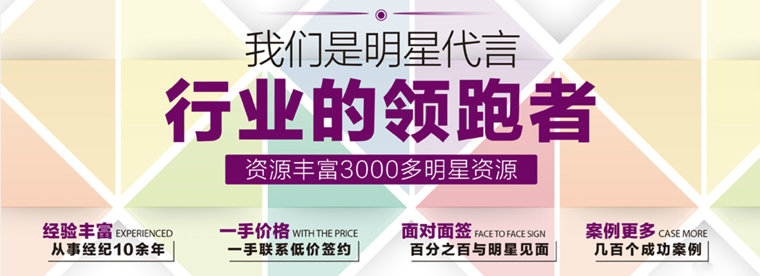 明星經(jīng)紀(jì)、明星演出、明星代言、綜藝節(jié)目廣告植入、明星祝福語、綜藝節(jié)目海報授權(quán)、明星影視版權(quán)聯(lián)動