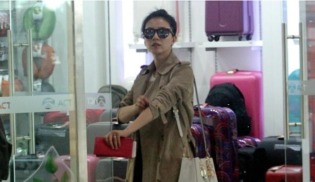 高圓圓黑超遮素顏趕機(jī)赴美 呆坐撅嘴頻賣萌