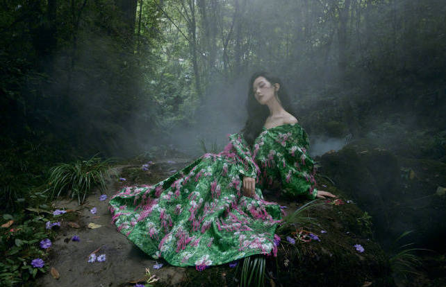 9月27日,李冰冰寫真釋出,綠色絲緞長裙,面紗掩面拂動(dòng),多種風(fēng)格駕輕就熟,嫵媚似青蛇。