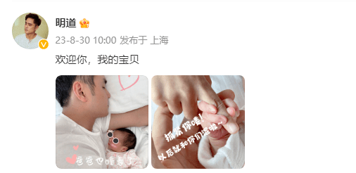星全文化明星經(jīng)紀公司資訊:8月30日,明道(明星經(jīng)紀公司)發(fā)文官宣二胎得女,“歡迎你,我的寶貝...