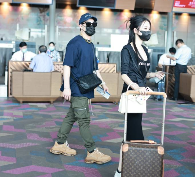 潘瑋柏夫婦現(xiàn)身機(jī)場 妻子推行李男方只顧耍帥