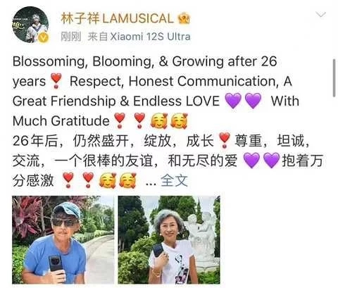 林子祥也在社交平臺(tái)分享了兩人在花園中的情侶照片。照片中林子祥身穿藍(lán)色短袖,頭戴牛仔做舊鴨舌帽,戴著墨鏡,十分低調(diào)。葉倩文穿著白色短袖,戴著珍珠耳環(huán),化了精致的妝容,微笑著看向鏡頭,整個(gè)人十分端莊大氣。