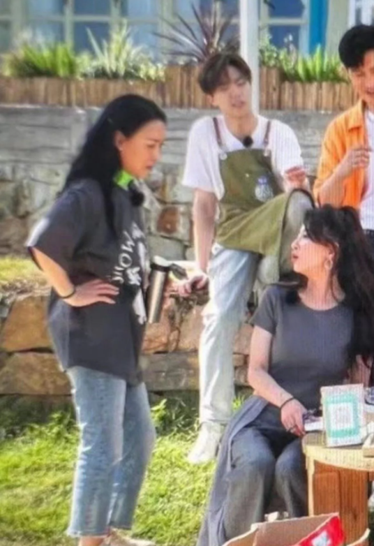 照片中,那英身穿灰色短袖下搭牛仔褲,雙手叉腰站在一旁,神情嚴(yán)肅,正與殷桃說著什么。站在烈日下的那英臉蛋已經(jīng)被曬得通紅,緊皺著眉頭,一副心情不佳的樣子。