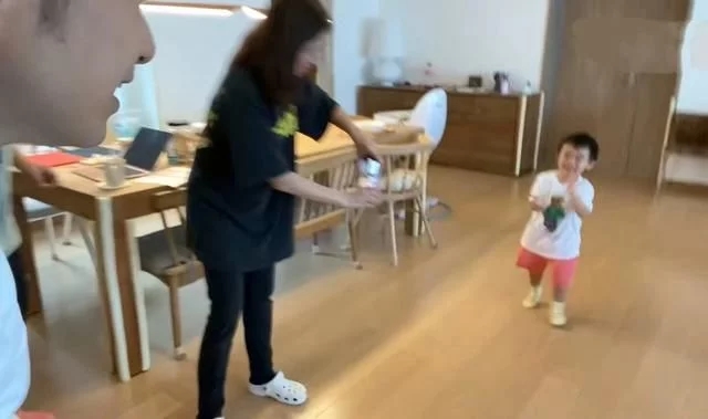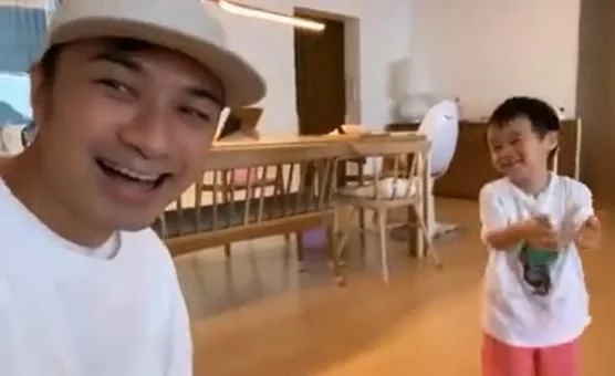 古巨基寵溺地笑著看兒子唱歌,一臉幸福的表情,而妻子陳韻晴則站在一旁默默錄像,看著父子倆互動,畫面十分溫馨。