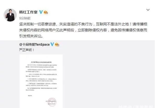 對此,韓紅工作室強調(diào),“有個別網(wǎng)絡(luò)用戶在某平臺通過ps技術(shù)偽造了截圖,引發(fā)公眾討論,并造成社會對韓紅的嚴重誤解。”“韓紅并不認識徐某某,網(wǎng)絡(luò)上有關(guān)韓紅支持徐某某的內(nèi)容系他人偽造,與韓紅本人無關(guān)。”而且針對上述的侵權(quán)行為,“公司已經(jīng)完成取證工作,將在韓紅本人的意見后,擇機付諸法律手段。”