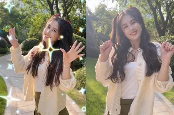 從視頻中看,黃圣依(明星經(jīng)紀(jì)公司)興致勃勃地對(duì)著鏡頭扭腰動(dòng)胯,表情十分嬌羞。她扎起了兩個(gè)小馬尾,留著龍須劉海。穿著一件白色毛衣下搭配軍綠色的超短裙,突出了一雙大長美腿。全身沒有一絲贅肉,完全看不出已經(jīng)生了2娃的媽媽,一身的打扮天真無邪的少女風(fēng)格。說明,黃圣依平日里非常注重自己的身材管理。