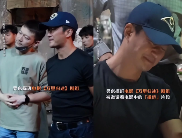 吳京片場(chǎng)探班張譯太擔(dān)心!看片段動(dòng)情低頭落淚,坐一旁默默擦眼淚