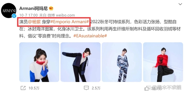 據(jù)悉,楊紫并非是阿瑪尼的代言人,目前兩人還在嘗試初步合作。