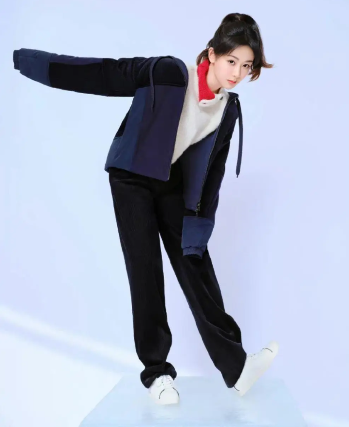 阿瑪尼一共釋出了楊紫四套造型,一套楊紫身穿白、紅、藍拼接的高領毛衣,下面搭配黑色休閑褲;另一套則在第一套的基礎上加了一件藏青色的外套。