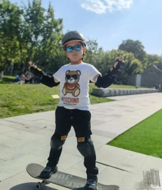 稍早,李小萌曬出了兩個兒子的近照來慶祝520,5歲的老大穿一身黑白配,戴著護膝護腕和頭盔,站在滑板上比著剪刀手,雖然臉上沒有表情,但是雙頰圓嘟嘟十分可愛。