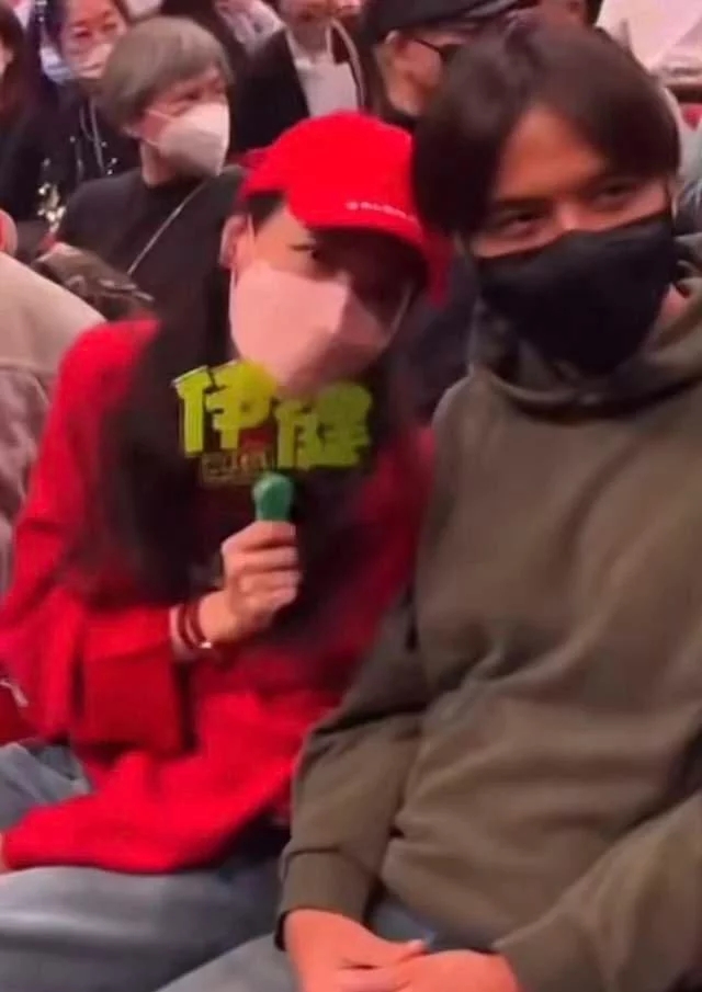 馮德倫和老婆一樣,穿著樸素的衛(wèi)衣,看起來似乎是情侶款?,F(xiàn)場(chǎng)人聲鼎沸,尖叫連連,可見鄭伊健的人氣不減當(dāng)年。舒淇手中拿著綠色燈牌為鄭伊健應(yīng)援,追星的模樣好似少女一般。