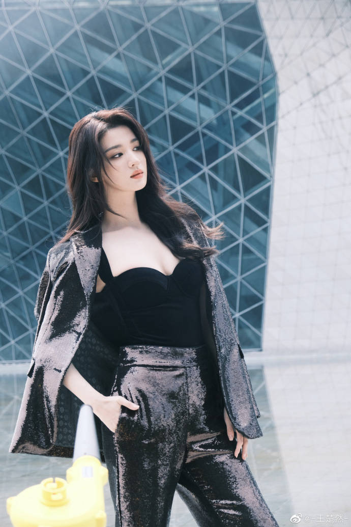王楚然穿黑色吊帶上衣,披著黑色馬甲,搭配黑皮長(zhǎng)褲,俏臉清麗脫俗,秀眸斜視前方,露出自己傲人的乳溝,這位女星單手插兜的樣子,絕對(duì)性感冷艷!
