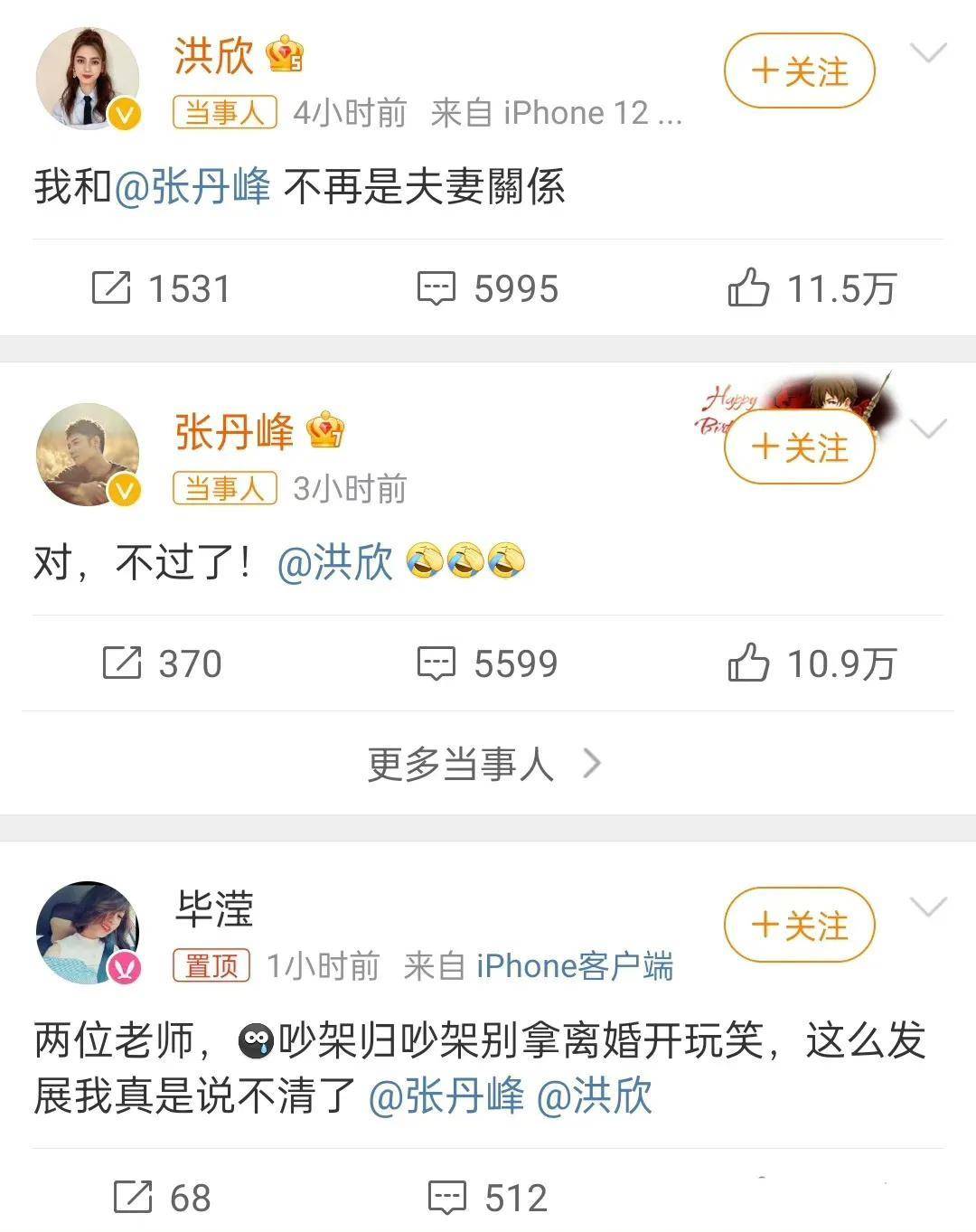 5月1日凌晨,洪欣(明星經(jīng)紀(jì)公司)和張丹峰在不少網(wǎng)友們還沉浸在假日的樂(lè)趣時(shí),忽然扔出了一個(gè)重磅炸彈——在微博官宣離婚。