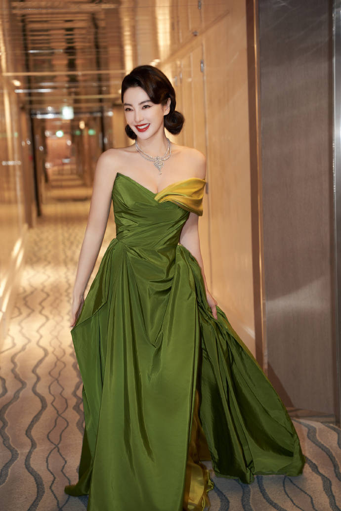 張雨綺身穿綠色抹胸裙,她俏臉成熟嫵媚,明眸善睞,唇紅齒白,烏黑的秀發(fā)梳在腦后,露出白皙的香肩和傲人的事業(yè)線,這位女星喜笑顏開(kāi),魔鬼身材盡顯無(wú)遺,絕對(duì)性感火辣!