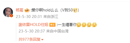 隨后,楊冪現(xiàn)身評(píng)論區(qū)表示:“愛(ài)你啊hold么么(V我50)。”謝依霖也回復(fù)道:“一生纏著你”。網(wǎng)友感嘆:“時(shí)代姐妹花,永遠(yuǎn)不分家”。
