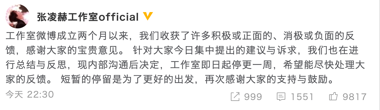 張凌赫工作室逐一回應(yīng)粉絲訴求:感謝寶貴意見