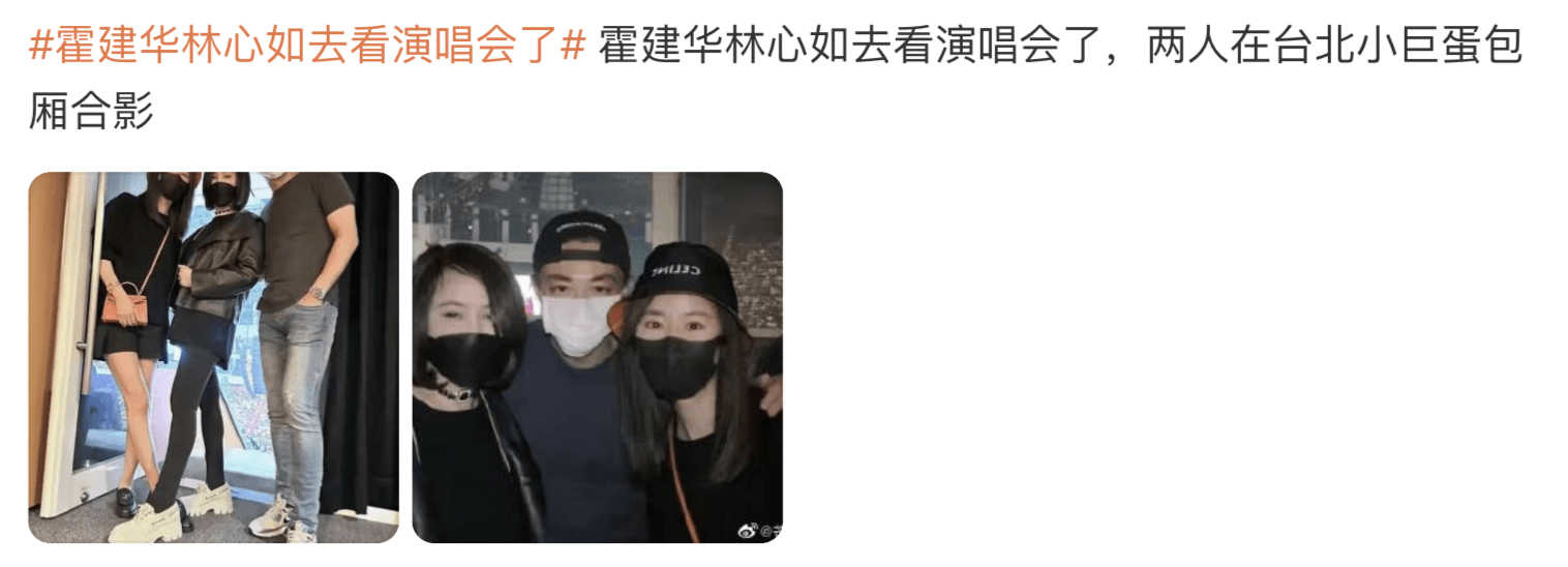 6月11日,網(wǎng)上曝光了霍建華(明星經(jīng)紀(jì)公司)和林心如的恩愛合影,兩人在6月10日一起到臺(tái)北小巨蛋看張清芳的演唱會(huì),二人頻繁合體,用行動(dòng)再次打臉婚變謠傳。