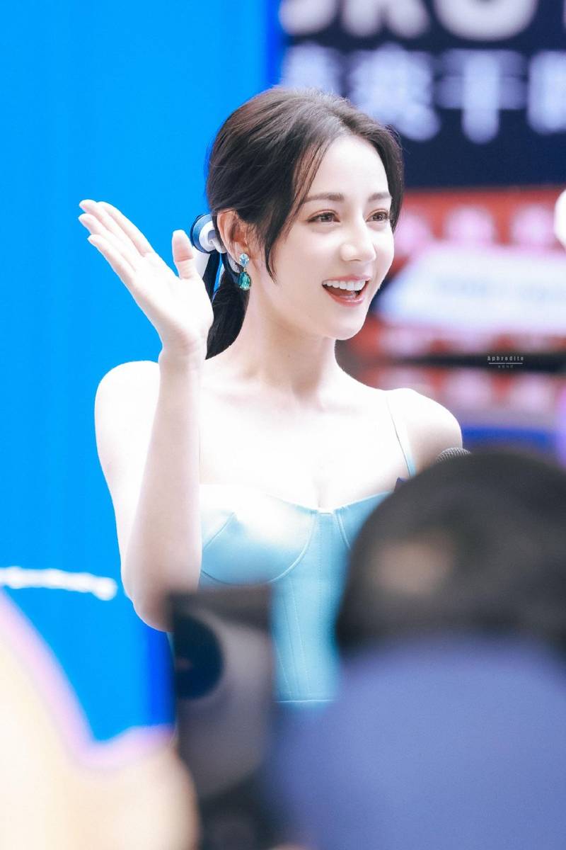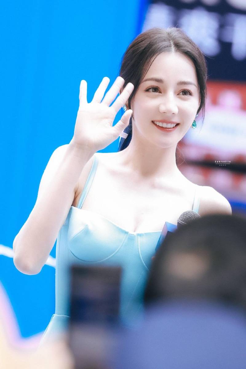 迪麗熱巴線下活動照曝光 穿藍(lán)色開叉長裙笑容甜美