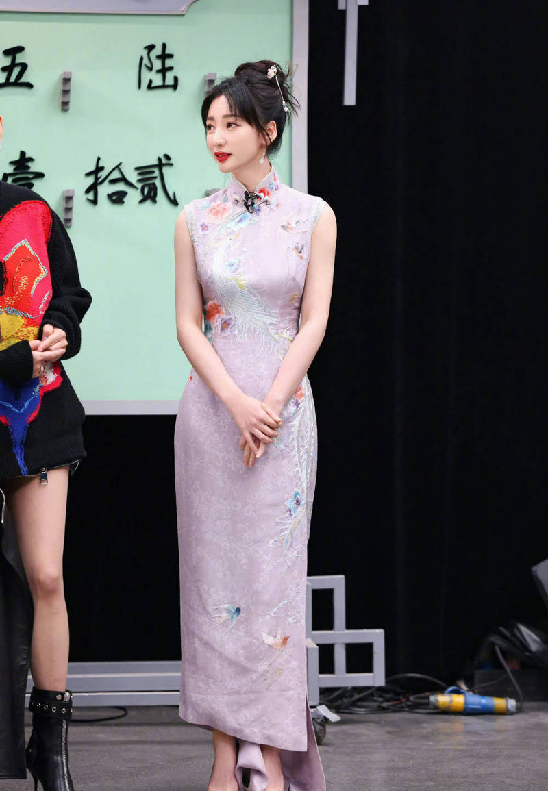 柳巖穿傳統(tǒng)色旗袍,身材比例好。