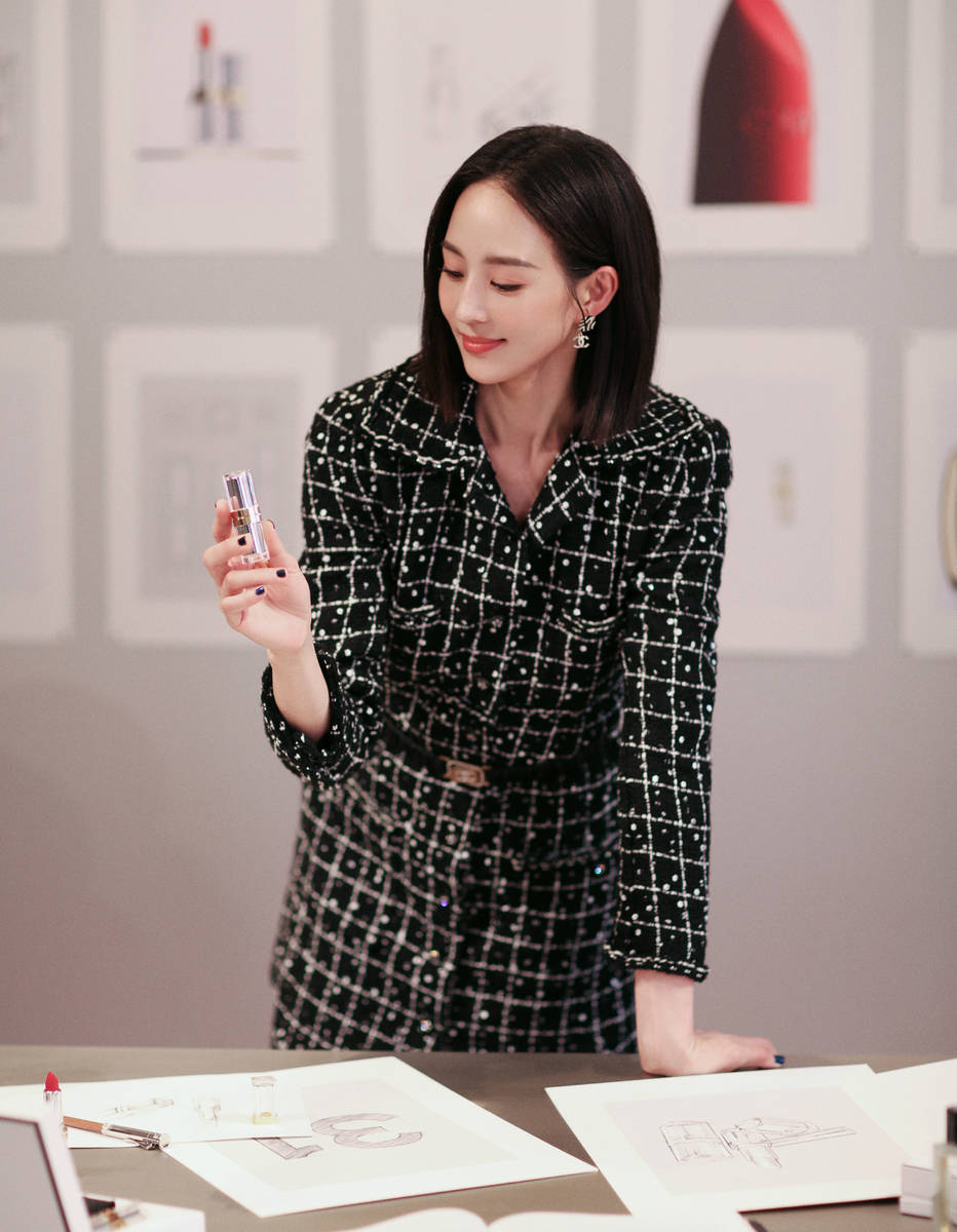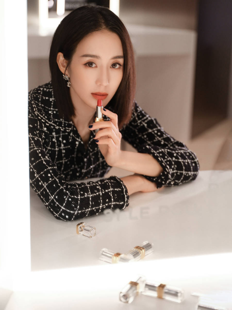 張鈞甯涂抹口紅,魅力十足。