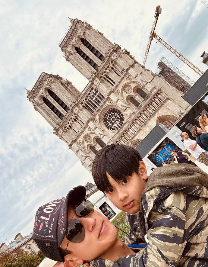 吳尊抱著兒子合影,父子倆長得好像,都十分帥氣。