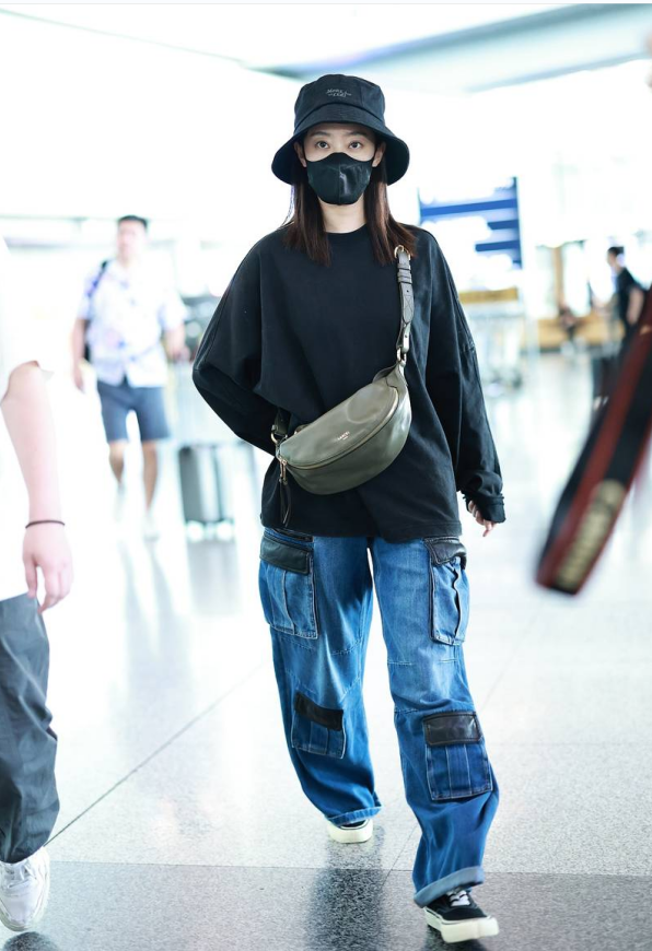 9月18日,北京,張小斐穿黑色衛(wèi)衣牛仔褲現(xiàn)身機(jī)場(chǎng),頭戴漁夫帽神采飛揚(yáng)。