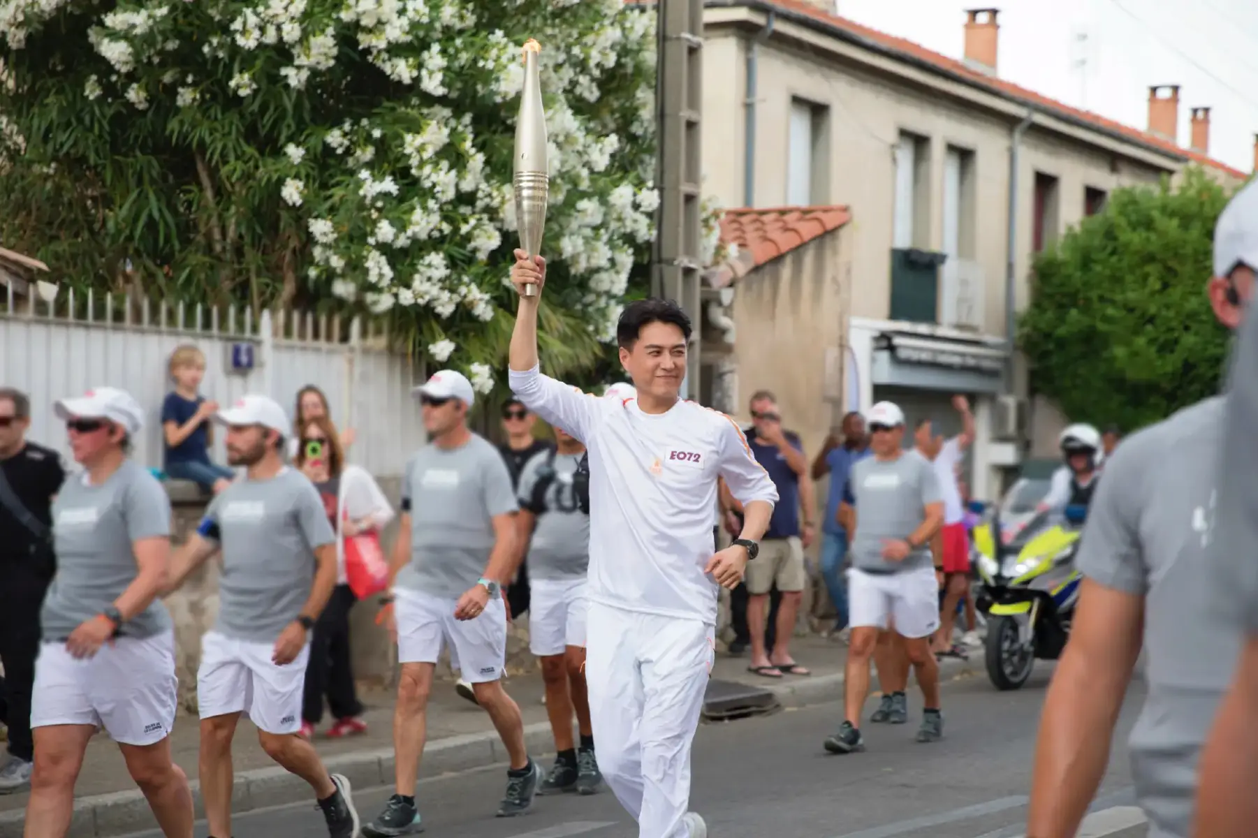 靳東參加巴黎奧運(yùn)會(huì)火炬?zhèn)鬟f活動(dòng)。