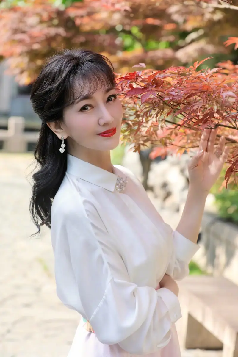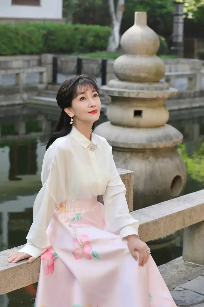 趙雅芝仰頭看天,儀態(tài)優(yōu)雅迷人。