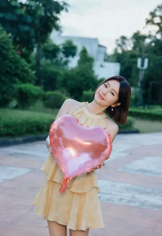 當前位置:首頁>新聞中心>娛樂新聞>秦嵐穿嫩黃掛脖裙溫柔活潑 手拿愛心氣球笑容甜美