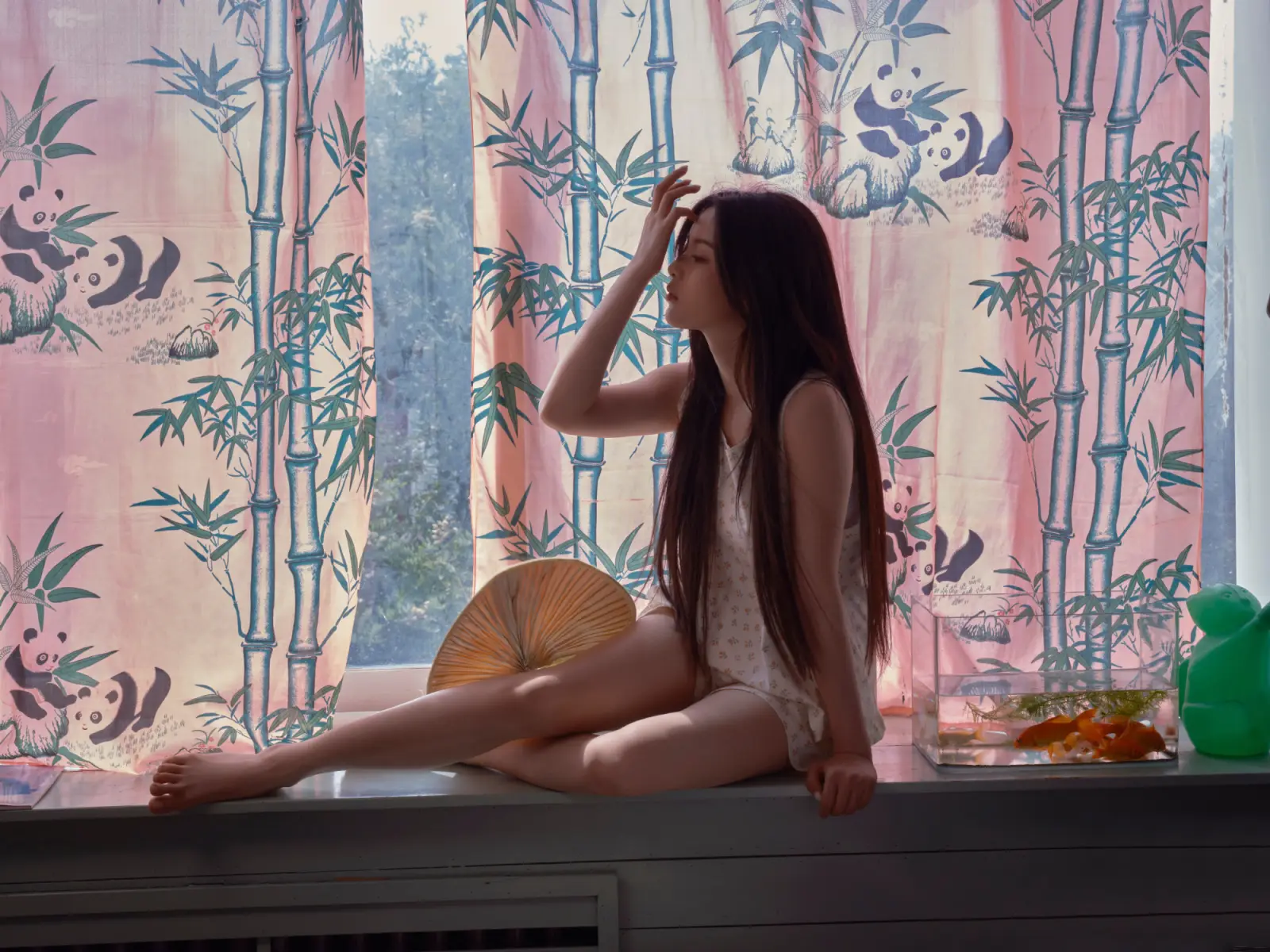 楊超越坐在窗邊搖蒲扇,秀發(fā)飛揚,美貌在線。