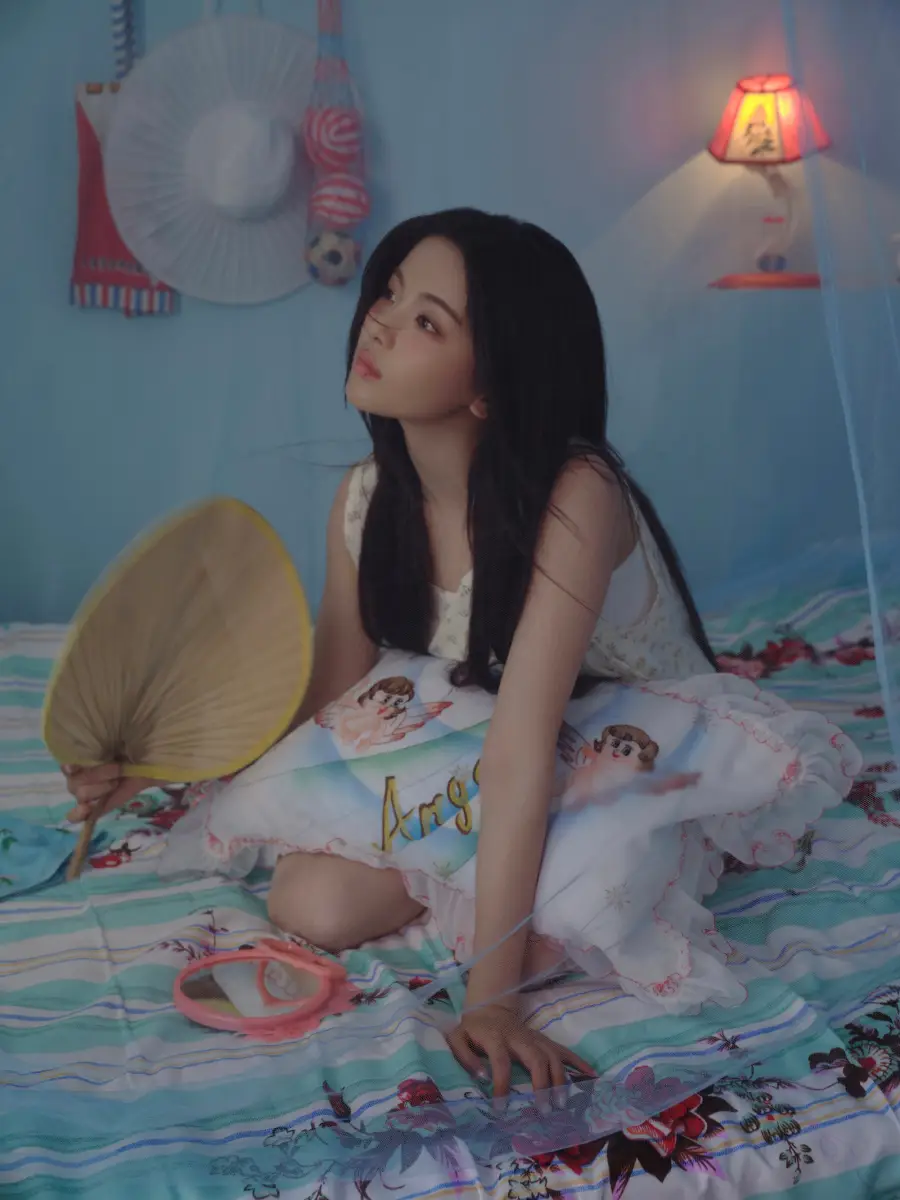 楊超越坐在床上發(fā)呆,可愛少女感滿滿!