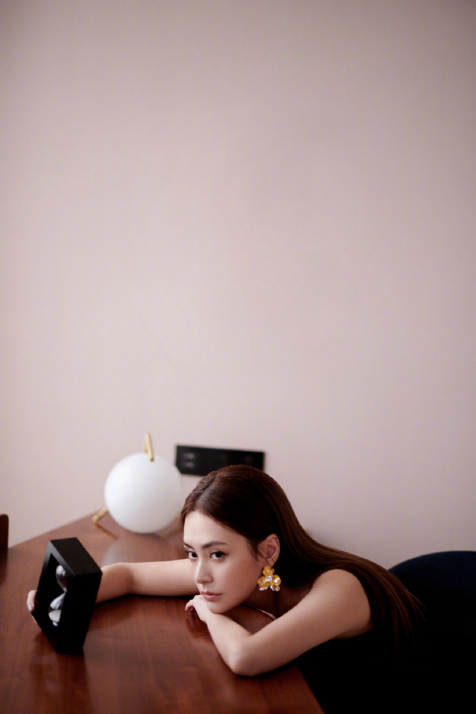 阿嬌俯身爬在桌子上,盡顯優(yōu)雅氣質(zhì)。