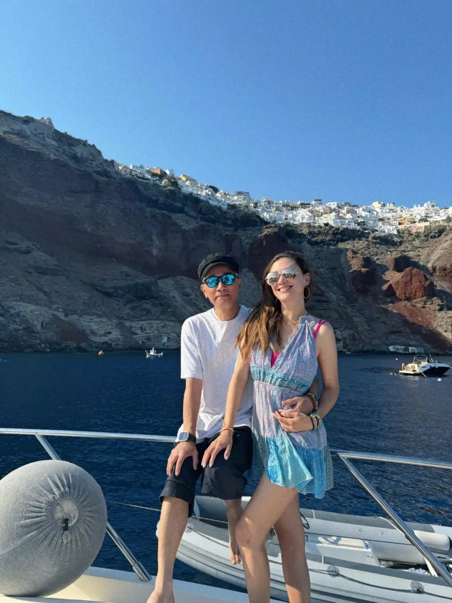 夫妻倆出海游玩,陳小春摟著應(yīng)采兒的腰恩愛又甜蜜。