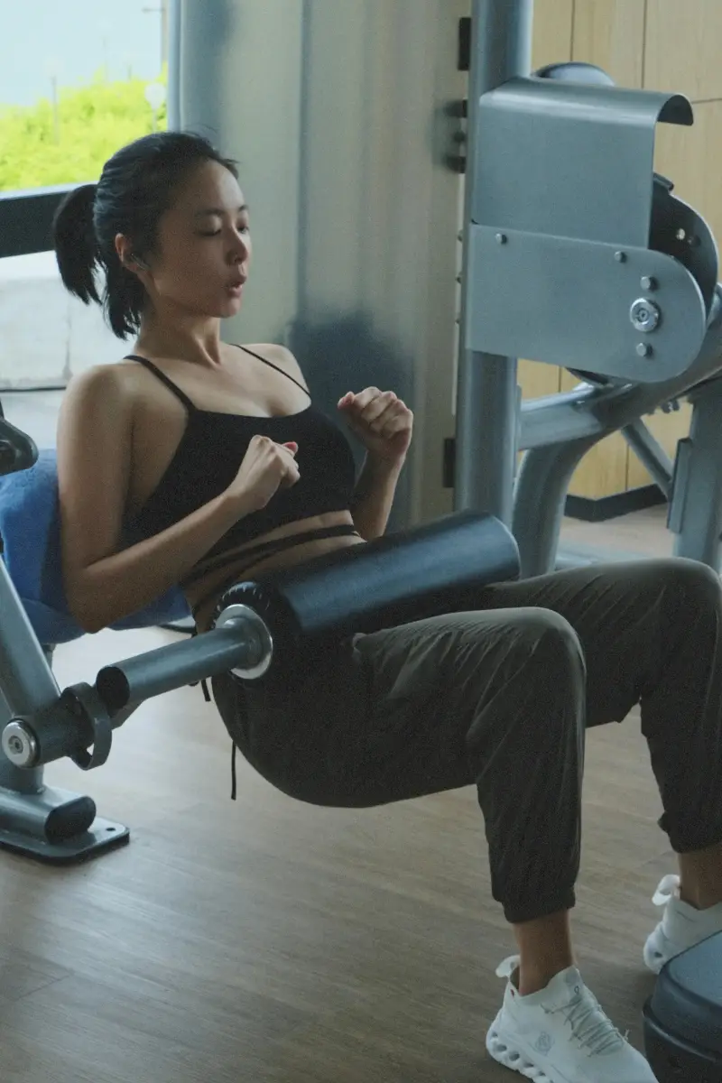 高葉挑戰(zhàn)各種健身動(dòng)作。