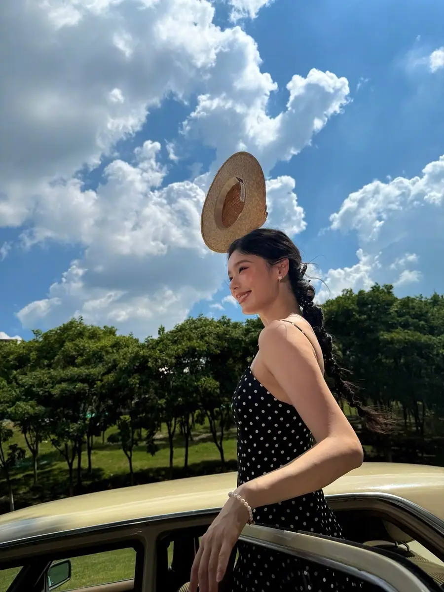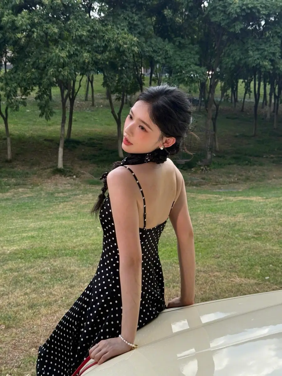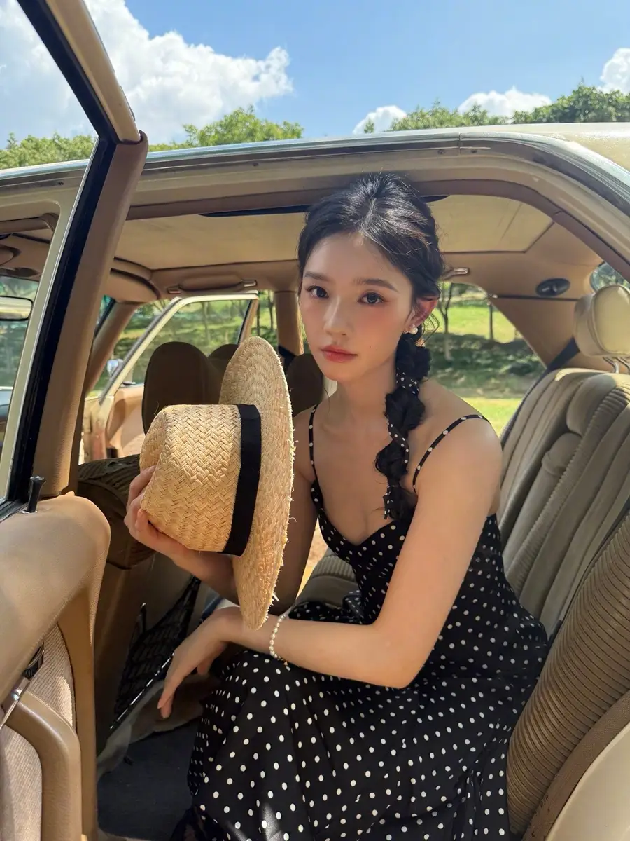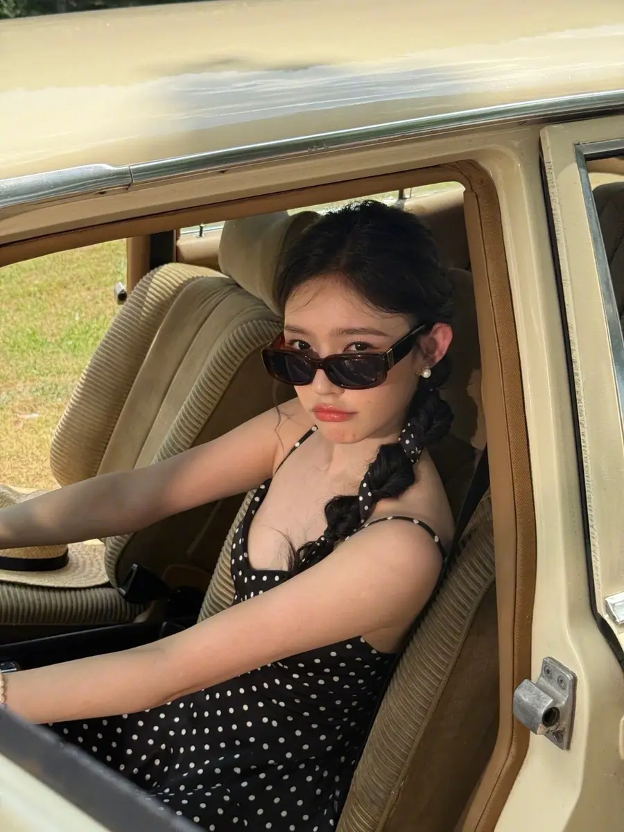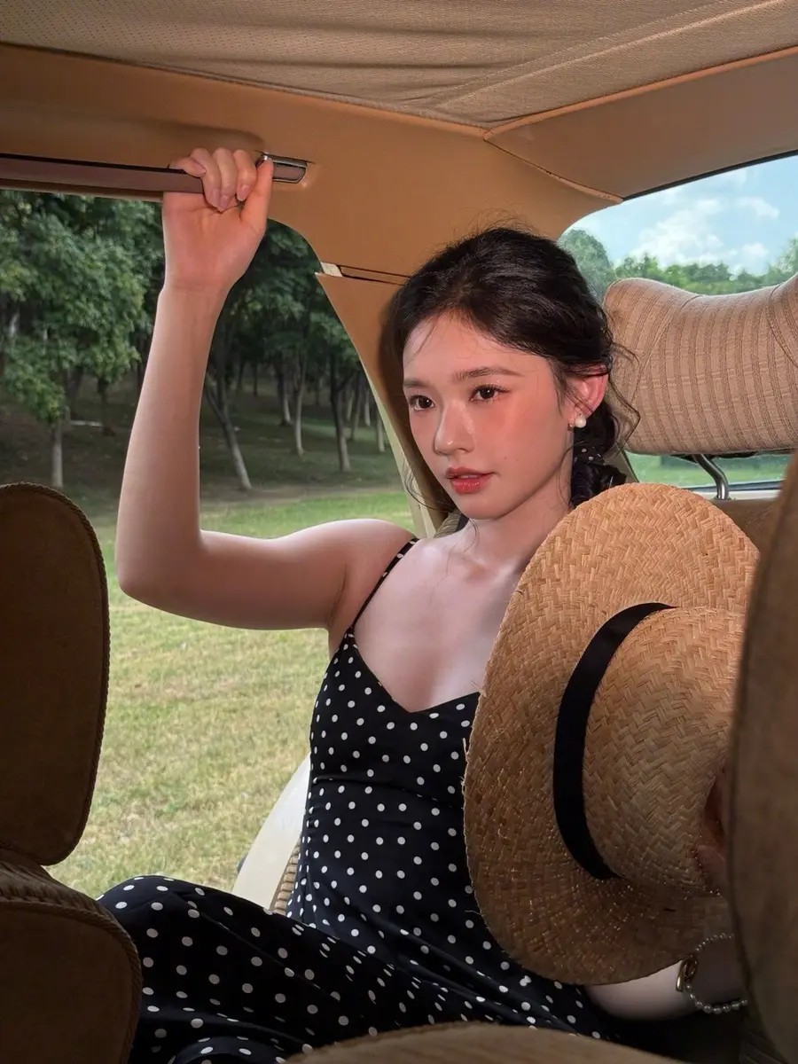 27日,林允(明星經(jīng)紀公司)在社交平臺上曬出一組戶外美照,她身穿黑色波點吊帶長裙,站在車里探出身子拍照,狀態(tài)松弛,美貌養(yǎng)眼!