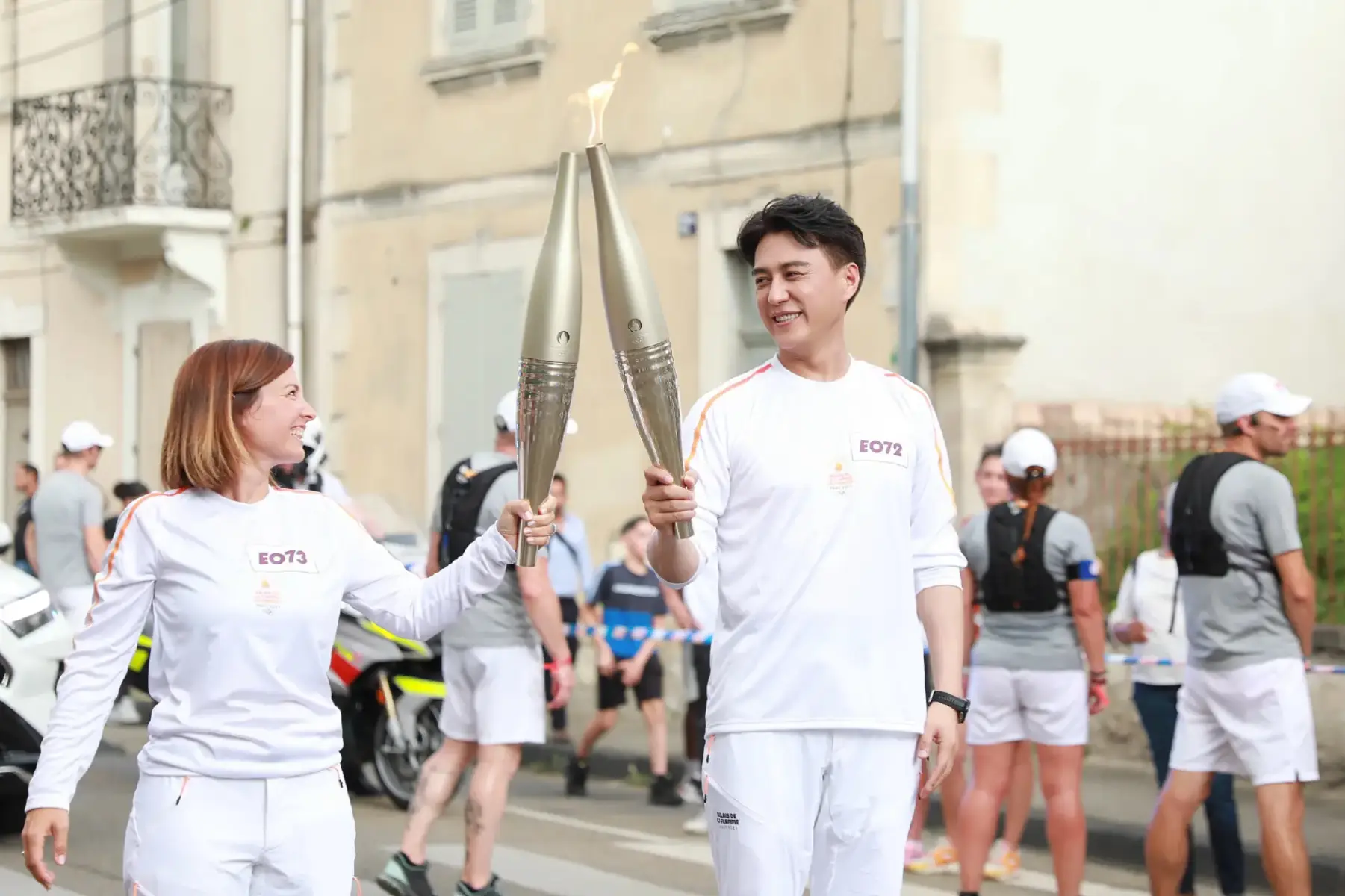 當(dāng)?shù)貢r(shí)間6月20日,演員靳東(明星經(jīng)紀(jì)公司)在法國(guó)阿維尼翁段參加了火炬?zhèn)鬟f活動(dòng),完成本次2024巴黎奧運(yùn)會(huì)火炬手的任務(wù)。