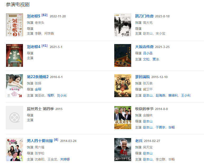 代表作品:相親、相親2、櫻桃、櫻桃紅、男人四十要出嫁