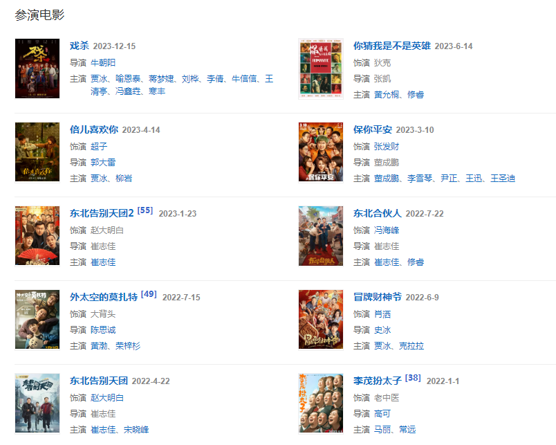 2022年1月7日,在播出的綜藝《冰雪正當燃》里擔任節(jié)目嘉賓; 1月30日,參加《2022年遼寧衛(wèi)視春節(jié)聯(lián)歡晚會》。4月29日,參演的喜劇電影《保你平安》上映。4月22日,主演的喜劇電影《東北告別天團》上映。