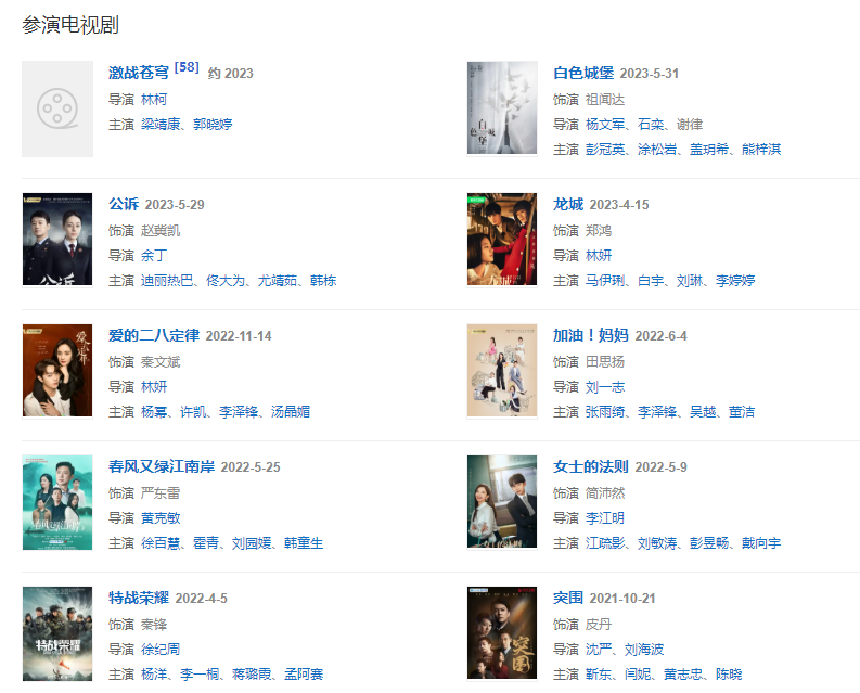 2022年4月5日,參演的當(dāng)代軍旅題材電視劇《特戰(zhàn)榮耀》播出,在劇中飾演秦鋒 ;5月9日,主演的都市女性職場話題劇《女士的法則》播出;5月25日,與徐百慧主演的的現(xiàn)實(shí)題材重點(diǎn)電視劇《春風(fēng)又綠江南岸》播出。